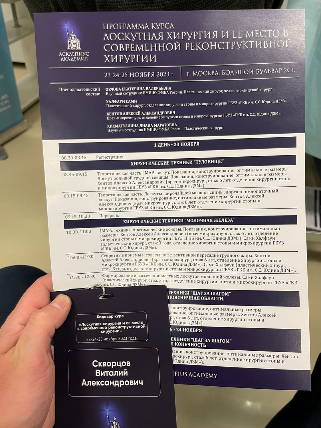 Сегодня в инновационном центре Сколково я участвовал в курсе, посвященному восстановлению груди с помощью собственных тканей (лоскутов). И это только начало!